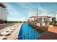 En la zona ajardinada, además de las maravillosas piscinas, también hay cuatro juegos con toboganes, simuladores al aire libre, fitness, sauna, centro de belleza y salón de masajes, supermercado, aparcamiento vigilado, restaurante-bar "Ship" y restaurante-pizzería, recepción de oficina, pista de tenis / campo de fútbol.