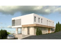 La casa de dos plantas está hecha en un estilo moderno, que encaja en la armonía del medio ambiente tanto como sea posible.