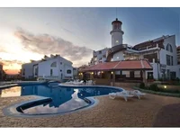 El complejo se encuentra en una zona tranquila de la ciudad de San Vlas, cerca del mar, en una pequeña calle cerca de la parada de autobús, lo que hace muy conveniente moverse tanto a la ciudad como más allá. Desde el complejo hasta el mar a solo 3 minutos a pie. El complejo de tipo cerrado, el acceso al territorio sólo es posible con la ayuda de un chip especial. El territorio en sí es muy verde, con hermosas zonas ajardinadas y una gran piscina, así como un bar y terraza, bajo el cual se puede esconder del sol y relajarse del bullicio del día.