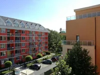 El estudio está situado en un complejo turístico en la parte central de Sunny Beach. Estilizado esquema de color da al complejo un aspecto moderno, complementado con elegantes parapetos de trabajo abierto. Grandes ventanas acristaladas dan a las habitaciones mucha luz. En las inmediaciones del complejo se encuentra la parte central del complejo con entretenimiento, tiendas y establecimientos.
