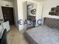 Apartamentos de estudio de lujo en Sveti Vlas, complejo Onyx. La habitación está equipada con buenos electrodomésticos y hermosos muebles nuevos, un baño con ducha y una terraza con vistas a la montaña. El complejo tiene una playa privada.