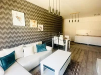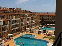 IBG Real Estates se complace en ofrecer a la venta este apartamento totalmente amueblado situado en el cuarto piso en complejo Domus Extra, Saint Vlas. Este complejo se encuentra en zona tranquila y tranquila de Saint Vlas, a solo 200 m de la playa y a poca distancia del centro del complejo. El complejo consta de 2 edificios separados de cinco pisos, cada uno con entrada independiente y ofrece comodidades como piscina con parte infantil, ascensor, aparcamiento, control de acceso, internet y TV por cable