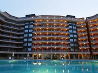 Description of object: We are pleased to offer you an exclusive 3-room apartment in the popular Peter House Apart-Hotel at Sunny Beach. Apartment Details: Living Area: 127.61 m² Floor: 3rd of 9 (with elevator) Room Layout: - Entrance area / Hallway - Living room with integrated yet separate kitchen - 2 bedrooms, one of which has its own bathroom with a bathtub - 2 bathrooms, one designed as a shower room - 2 terraces overlooking the pool and the complex The apartment is bright, spaciously designed, and offers a stunning view of the pool area and well-maintained grounds through the terraces. About the Peter House Complex: The Peter House Apart-Hotel is located in the northern part of the holiday resort Sunny Beach, just 200 meters from the beach. The luxurious complex is a nine-story building with classic architecture, divided into three sections with elevators. It was constructed using high-quality materials with hydro- and thermal insulation and covers a total area of 33,000 m². The complex offers 181 apartments, ranging from studios, one-bedroom to two-bedroom units, including penthouses. Panoramic windows, glass railings on balconies, and elegant glass decorations lend sophistication and style to the property. Facilities and Infrastructure of the Complex: - Two outdoor pools for adults with children’s areas - Sunbathing and relaxation zones with loungers and umbrellas - Restaurant with bar and lobby bar - Spa area and modern fitness center - Medical center - Playground and kids' room - Shops, souvenir stores, and currency exchange office - 24-hour reception and security service - Assistance with rental management of apartments - Internet access throughout the complex - Parking spaces on site Location and Surroundings: The complex is situated in a beautiful green environment with all amenities for a complete summer vacation: - Beach only 200 meters away (with paid and free sections) - Restaurants, bars, cafes, souvenir shops, pharmacies, and supermarkets nearby - Action Aquapark approximately 1 km away - Public transportation stop about 100 meters away Fixture and fittings: We are pleased to offer you an exclusive 3-room apartment in the popular Peter House Apart-Hotel at Sunny Beach. Apartment Details: Living Area: 127.61 m² Floor: 3rd of 9 (with elevator) Room Layout: Entrance / Hallway Living Room with sofa, coffee table, TV, dining table, chairs, decoration, air conditioning Integrated yet separated kitchen with electrical appliances 2 Bedrooms: Master bedroom with double bed, wardrobe, bedside tables, private bathroom with bathtub and access to the terrace Second bedroom with 2 single beds, wardrobe, bedside tables, ideal as a guest or children's room, access to the terrace 2 Bathrooms: one with shower, the other with bathtub 2 Terraces overlooking the pool and well-maintained grounds The apartment is bright, generously laid out, and offers a stunning view of the pool area and landscaped green spaces. About Peter House Complex: Peter House Apart-Hotel is located in the northern part of Sunny Beach, just 200 meters from the beach. The luxurious complex consists of a 9-storey building, classically divided into 3 sections, with an elevator. The high-quality construction includes hydro- and thermal insulation and has a total area of 33,000 m². With a total of 181 apartments—from studios to 1- and 2-room apartments to penthouses—the development offers sophistication and comfort through panoramic windows, glass railings on balconies, and elegant glass decorations. Facilities and Infrastructure of the Complex: 2 outdoor pools for adults with separate children's areas Sunbathing and relaxation zones with loungers and umbrellas Restaurant with bar and lobby bar Spa area and modern fitness center Medical center Children’s playground and kids' room Shops, souvenir shops, and currency exchange office 24-hour reception and security service Support for rental and management of apartments Internet access throughout the complex Parking spaces on site This apartment in Peter House Apart-Hotel offers the perfect combination of luxurious living, leisure amenities, and prime location - ideal as a holiday home, secondary residence, or investment. Location: The Peter House Apart-Hotel is located in the northern part of Sunny Beach (Sonnenstrand), one of the most well-known and popular holiday resorts on Bulgaria's Black Sea coast. Its location impresses with its proximity to the beach - only about 200 meters away - and at the same time offers a quiet, green environment that guarantees relaxation and recreation. The surroundings provide excellent infrastructure for a comfortable stay: Beach and Sea: Just a few minutes' walk away, with paid and free beach sections, umbrellas, and sunbeds. Restaurants, Bars, and Cafés: Numerous options nearby for every taste. Shopping Opportunities: Supermarkets, souvenir shops, pharmacies, and banks are within walking distance. Leisure and Entertainment: Playgrounds, Luna Park, water attractions, massages, clubs, and restaurants offer a variety of activities. Transport: Bus stops and taxi services nearby provide easy access to other locations along the coast. Highlights Nearby: The famous Action Aquapark is about 1 km away; Marina Dineva Marina approximately 2 km. Burgas Airport is about 29 km away; Varna Airport is approximately 99 km away. The location of Peter House combines proximity to the beach, tranquility, green surroundings, and excellent infrastructure—ideal for holidays, year-round living, or investment. Miscellaneous: Do you have questions about this property? Or would you like to arrange a viewing? Feel free to contact us without obligation using the provided contact details.