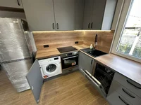 Cocina integrada con horno, vitrocerámica, campana, nevera, lavadora y lavavajillas