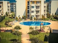 IBG Real Estates offers for sale a furnished studio in the popular Holiday Fort Noks complex, ideally located next to the Aqua Park and just a short walk from the beautiful 8-km sandy beach of Sunny Beach. The complex is situated in a quiet area, away from the busy center and offers everything needed for a comfortable holiday or year-round living.