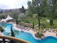 We present to you an exceptional 3-room apartment in one of the most exclusive resorts on the Bulgarian Black Sea coast - the Harmony Suites 11 Grand Resort in Sunny Beach. The apartment impresses with its spacious layout, high-quality furnishings, and a stunning view of the pool and garden area.