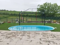 The house is fully renovated and equipped, featuring PVC windows, new electrical wiring, new plumbing, new roof, new doors, etc. Heating in winter is provided by a pellet fireplace. It includes four air conditioners and several TVs. Flooring is terracotta and laminate.