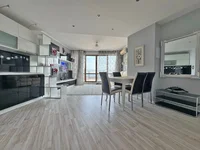 Gran apartamento de dos habitaciones (120 m2) con vistas directas al mar en el complejo Grand Hotel en Sveti Vlas, Bulgaria. El apartamento está situado en el sexto piso y ofrece una fantástica vista panorámica del mar. Está totalmente amueblado con muebles de lujo y está en excelentes condiciones.