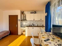 El estudio está totalmente amueblado y equipado para una vida cómoda. El espacio de estar está funcionalmente dividido e incluye una zona de cocina, comedor, sala de estar con sofá y armarios de almacenamiento. El baño está equipado con ducha.