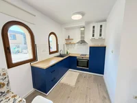 La cocina integrada está diseñada funcionalmente y equipada con horno, nevera y fregadero, lo que lo hace ideal para uso diario.