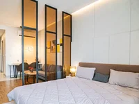 La infraestructura incluye suelos de restaurante, SPA-complex, zona de fitness, salón de vinos, sala de funciones, jardines al aire libre, piscina infinita y barra de cielo en el techo. Sistema inteligente DOWHAT ofrece servicio automatizado: servicio de habitaciones, entrega de robots, limpieza, servicios de reserva y gestión de unidades.