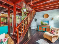 La casa principal es una gema de estilo caribeño de 3 dormitorios con cocina reformada y vistas impresionantes al bosque. Las actualizaciones recientes incluyen unidades modernas de AC, iluminación mejorada, pintura fresca, cerraduras digitales y una cubierta refinished para el disfrute al aire libre.