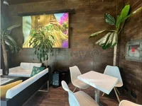 El espacio consta de la parte principal, que se divide internamente sólo con vidrio transparente, un espacio adicional en la planta baja, un espacio en el sótano del edificio conectado a la planta baja por una escalera, 5 aseos y dos terrazas.