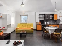 El apartamento más grande consta de un salón, comedor y cocina en un concepto abierto, dos dormitorios, un baño y una logia.
