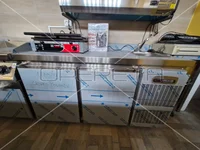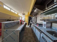 The first floor has an entrance from the street and includes three sanitary facilities, a counter, and all necessary equipment for a bakery or fast food operation. Air conditioning installations are already in place, and a gas cylinder can be used for baking ovens.