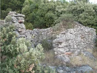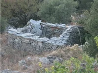 Korcula - Cara. Terreno agrícola a lo largo de la carretera de 9,700 m2 con 3 antiguas casas de piedra, cada una de 10 m2 y un pozo.