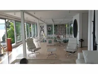 En la primera planta hay una hermosa sala de estar grande, una cocina con comedor, un dormitorio, un vestidor y un baño, así como una salida a una gran terraza donde hay una piscina.