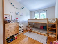 En la primera planta hay un salón con acceso al balcón e integrado con el comedor y la cocina, una pequeña oficina o habitación con acceso a la terraza, un baño y una zona de entrada. Una escalera de viento conduce a la segunda planta del apartamento, donde hay tres amplios dormitorios y un baño.