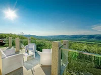 Nivel superior: hall, dos bedoroms, dos baños y terraza con vista a Motovun.