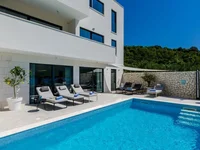 La villa goza de una posición elevada con espectaculares vistas abiertas al Adriático, mientras que una tranquila carretera local separa la propiedad de la costa, garantizando tanto la atmósfera costera directa como la privacidad.