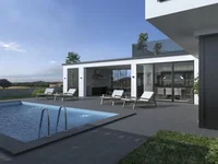 La planta baja ofrece un dormitorio con su propio baño, un salón, cocina, comedor, aseo de invitados y amplia terraza de 20m2. La planta superior tiene pasillo, tres dormitorios con baños en-suite y terrazas. Un hermoso jardín con piscina al aire libre de 28 metros cuadrados. una terraza abierta junto a la piscina con una cocina de verano y lavadero. Excelente ubicación de la villa, la tierra frente a la villa es de valor agrícola y garantiza la paz y una vista abierta a la vegetación y la ciudad, en la pequeña ciudad de Jadreški, que está a sólo 3 km de Pula.