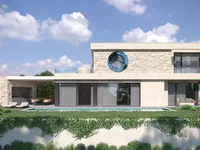 La especialidad y singularidad de esta villa moderna se encuentra en la ventana redonda que mostrará el reflejo del mar.