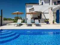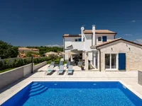 Poreč is a city located in the heart of the western coast of Istria. A city of culture, tourism, sports and entertainment, awarded multiple times for its orderliness and cleanliness. A city that uniquely combines a rich cultural and historical heritage and the most modern amenities of a top tourist destination. Not far from the town of Poreč, there is a villa for sale in a desirable location. The villa of timeless architecture, partly made of stone with rustic blue shutters, is located far enough from the crowds and noise, but still close to all the facilities needed for a year-round stay. Harmoniously planned rooms, a modern interior and an equally attractive and coordinated exterior show how every detail was thought of when decorating this villa.