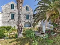 En la isla de Šipan, en la primera línea del mar, se encuentra una meticulosa casa de piedra restaurada, situada justo al borde del agua, con un jardín encantador.