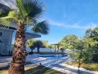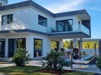 En la planta baja hay una cocina totalmente equipada (doble heladera, cafetera, hervidor de agua, microondas, horno, lavavajillas, batidora, tostadora, etc.) En la extensión a la cocina hay un comedor con una hermosa mesa de madera para 8 personas. , un trastero con lavadora / secadora, y un aseo de invitados. El salón está conectado con el comedor está decorado con muebles modernos de tórax, una chimenea y un sistema de audio de calidad Hi-Fi Denon home cinema, e iluminación led que da un ambiente especial - llevado a lo largo de toda la planta baja. Los dispositivos de calefacción por suelo radiante y aire acondicionado están instalados para una temperatura y confort óptimos en cualquier momento del año. La vista a través de las grandes paredes de vidrio que proporcionan luz natural y aislamiento superior del sonido y el calor, mira hacia la zona exterior que consiste en una terraza cubierta con muebles de jardín de lujo, una parrilla Broil King y bose altavoces, una piscina decorada con una gran zona de tomar el sol y un lugar para relajarse, una ducha al aire libre y una hermosa zona verde completa con olivos y palmeras. Para los amantes de la natación nocturna, la piscina está equipada con iluminación nocturna. Desde el contenido adicional, hay una canasta para baloncesto, un trampolín y una diapositiva para niños, y una casa de madera en la que hay un gimnasio, que también se puede utilizar como trastero.