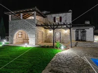 Istria, in a small village in the central part of central Istria, near the historic town of Tinjan, there is this luxurious stone villa with a net area of 245 m2.On a spacious plot of land of 1,112 m2, in complete peace, with a view of the greenery, it will provide rest in an authentic rustic style.The villa was adapted in 2019 and is currently used as a holiday home.The rooms are comfortable, the interior design combines stone and wood with lots of rustic elements and furniture in the same style.It extends over two floors;on the ground floor there is a kitchen with a pantry, a dining room, a guest toilet, a living room with a fireplace and an exit to a beautiful covered terrace with a view of the pool and nature.In the extension of the terrace is a room where there is a fireplace, a pantry and a bathroom.There are three bedrooms on the first floor, each with its own bathroom with both a shower and a bathtub. Two of the rooms have a wardrobe and a common covered terrace.Each room has air conditioning for cooling and heating.The floor in the rooms is wooden parquet, and the furniture is completely made of real wood.The ground floor has underfloor heating with a heat pump.The 37 m2 swimming pool is equipped for heating.Beautiful lawn with automatic irrigation system.Parking spaces for six cars, two of which are covered, and a charging station for electric cars.