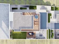 En la parte superior de la villa hay una sala de estar con un torbellino que es termo cerrado por paredes de vidrio y se puede utilizar tanto en verano como en invierno. La chimenea de diseño ofrece un ambiente especial en los meses de invierno. En verano, este espacio puede ser una terraza abierta equipada con cómodos sillones y un sofá. En esta zona también hay un baño separado, pequeña cocina-bar y cubierta solar.