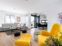 La parte residencial consta de tres unidades residenciales, por lo que en la planta baja hay dos viviendas, cada una con una superficie de 52 m2, con dos dormitorios, un baño y una cocina, mientras que en la primera planta hay una unidad residencial más grande, con una superficie de 104 m2, con tres dormitorios. salón con cocina y comedor y acceso directo a la terraza exterior con vistas parciales al mar.