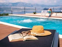 Brač, villa de 96 m2 con piscina y jacuzzi, situada en una parcela de 1055m2 y una parcela en la calle de 3500m2 con 87 olivos.