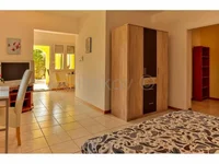La villa consta de una planta baja, una primera planta y un ático. La planta baja tiene una superficie total de 150 m2 y consta de 3 apartamentos de estudio decorados. Cada apartamento tiene su propia cocina, baño con aseo y balcón. En la primera planta hay un amplio apartamento de 150 m2 que consta de 4 habitaciones, cocina, baño, aseo y dos balcones. El ático está en la etapa roh-bau y se puede organizar según los deseos del futuro propietario.