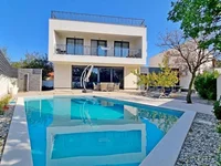 Una terraza en la azotea sirve como zona de tomar el sol, proporcionando una vista impresionante del mar y toda la región de Kvarner. El jardín cuenta con una piscina y varias comodidades para una estancia agradable y agradable.