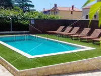 Istria, Pula, only 700 m from the sea, in a quiet part of the village, near all amenities, a detached one-story house with a net area of 438 m2 is for sale. The house consists of two spacious apartments. It was completely adapted in 2014.On the ground floor there is an apartment with a net area of 268 m2, which consists of: hallway, living room, kitchen with dining room, three bedrooms, two bathrooms, storage room, gym, room with the function of a playroom and, in the outer part, a covered terrace with a barbecue.On the first floor is an apartment of 170 m2 consisting of a hallway, a living room with a dining room, four bedrooms, two bathrooms, a toilet and a large covered terrace of 88 m2 with a view of the sea.Each room has air conditioning and TV.The yard of the house is landscaped, two entrances from the road, 4-5 parking spaces.A heated swimming pool with a sunbathing area forms the central part of the garden.Garage -50 m2.The house is rented for tourists during the season, so it is an excellent investment property.Due to its excellent location, it is also an ideal property for living.
