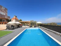 La villa ofrece impresionantes vistas panorámicas al mar, una amplia terraza con piscina, barbacoa, tumbonas y un hermoso jardín lleno de hierbas aromáticas.