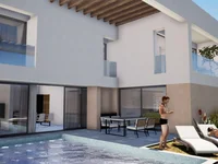Bonita villa con piscina en venta. Es un edificio moderno y nuevo. La villa consta de una planta baja y una primera planta. Desde el primer piso se extiende una vista lateral del mar.