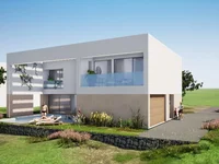 En la planta baja hay una entrada, vestíbulo, cocina con comedor y sala de estar, aseo, granja, 2 terrazas cubiertas. En la planta baja también hay un amplio garaje de 25 m2. Además, la terraza de la planta baja está decorada con una piscina de 25.80 m2. La superficie total de la planta baja es de 153,70 m2. En la planta hay también un hall, 2 dormitorios, cada uno con su propio baño y 3 loggies. La primera planta es de 89.8 m2.