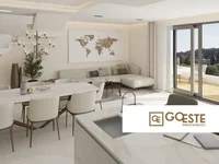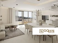 El apartamento consta de una amplia y abierta zona diaria con cocina, comedor y un salón de 48 m2 con acceso a una terraza de 18.79 m2. En el pasillo hay una habitación económica, un aseo separado, dos dormitorios, uno de los cuales tiene un baño y un baño separado. Las escaleras conducen al ático, donde hay un dormitorio con baño, sala de bienestar con sauna y jacuzzi y una terraza de 33,5 m2 con una hermosa vista del mar y la ciudad.