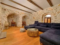Esta hermosa casa de piedra de buena calidad se construye en dos niveles. La propiedad tiene una superficie total de 247 m2. Se compone de una planta baja y una planta superior. En la planta baja de la villa hay una bodega con sauna integrada, gimnasio y un hermoso salón con un gran espacio para socializar. Las escaleras internas conducen a la planta superior, donde hay una cocina exterior cubierta, totalmente equipada. El apartamento de dos niveles está situado en la primera planta y consta de un hall de entrada, dos baños, dos dormitorios, un salón y un comedor con cocina. La terraza exterior ofrece una maravillosa vista de la ciudad costera y el mar!
