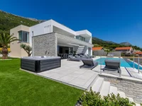 Situado en una prestigiosa zona entre Split y Trogir, a sólo 2 km del mar, rodeado de paz y privacidad, esta extraordinaria villa de nueva construcción ofrece una vista panorámica sin obstáculos del mar y las islas.