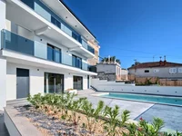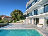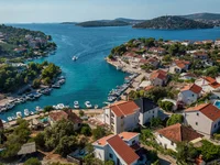 Una villa de lujo de nueva construcción en venta en primera fila al mar cerca de Rogoznica ofrece una privacidad excepcional y vistas impresionantes del Adriático.