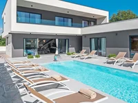 Elevate your vision of Adriatic paradise with this exquisite modern architecture villa in Rovinj to buy, a standout among the finest luxury villas in Rovinj Croatia priced at just 990,000€, strategically positioned in one of the Adriatic's most romantic havens where the UNESCO-protected old town core of this artistic Istrian treasure perpetually enchants romantics, creatives, and savvy global buyers, cementing its role as a top-tier tourist magnet in the dynamic real estate in Croatia to buy arena featuring 5 opulent bedrooms and 5 lavish en-suite bathrooms spread across a substantial 308 sqm of impeccably designed living space on a vast 1,136 sqm land plot.
