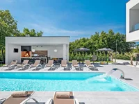 Encircling the home, the thoughtfully sculpted yard—expertly landscaped and botanically enriched for atmospheric allure—stands securely fenced for privacy and is highlighted by a lavish 38 sqm infinity-edge pool paired with expansive sun lounging decks for leisurely sun-soaked hours, complemented by a shaded summer kitchen that amplifies al fresco dining under starlit skies, completing the resort-caliber exterior that epitomizes the pinnacle of best luxury villas in Istria. Through its unmatched locale, ingenious layout, and built-in luxuries, this modern villa in Rovinj to buy shines as the ideal portal to a serene family existence along Rovinj's enchanted waterfront or a strategic stake in Croatia's escalating vacation rental ecosystem, where surging interest in such design-forward properties guarantees outstanding yields season after season for forward-thinking buyers exploring Rovinj villas for sale in 2025.