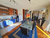 This is a two-story apartment with an internal staircase and an entrance area on the lower floor. Situated in a well-constructed building, the apartment occupies the second floor and the attic, with a total area of 108 m². It consists of an entrance hall, a living room with a kitchen and dining area, a bathroom, and a covered terrace on the second floor, while the attic features three bedrooms and a second bathroom. The interior is very well maintained, fully furnished with quality furniture, and equipped with all necessary technical appliances, making it ready for immediate occupancy or tourist use.