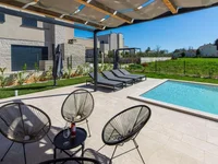 La villa se encuentra en el borde de un conocido y pequeño asentamiento en la costa oriental de la península de Istria. Gracias a su ubicación, la vida cotidiana es extremadamente conveniente, ya que todas las comodidades necesarias como tiendas, restaurantes, cafeterías, un médico, escuela y oficina de correos están a poca distancia. Al mismo tiempo, las playas naturales y mantenidas con mar turquesa cristalino están a sólo 2 km.