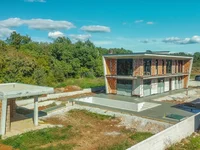 Description of object: In the quiet village of Matulini, just a ten-minute drive from the sea and the historic center of Poreč, a modern villa with the working name Black Beauty is being built. The property is located in a location that offers an ideal balance between privacy, nature and quick access to city services. On one side, the land is surrounded by a forest, on the other it is connected to family houses used for summer rental, which confirms the attractiveness of the area from an investment perspective. The villa is situated on a spacious plot of 1,080 m² and offers a gross living area of 242.95 m² spread over two floors. The outdoor area includes a 36.30 m² swimming pool, a 23.88 m² summer kitchen, a separate outdoor storage room and three parking spaces. The entire concept of the house is designed with an emphasis on comfort, functionality and privacy. On the ground floor there is an entrance hall with a covered passage, one bedroom with an en-suite bathroom, a separate guest toilet and an open living space connecting the kitchen, dining room and living room. This space seamlessly connects to a partially covered terrace and garden, which creates an ideal environment for relaxation and social moments. On the first floor there are three spacious bedrooms, each with its own bathroom and direct access to the balcony, which ensures maximum comfort and privacy for all residents of the house. The technical solution meets modern standards of contemporary housing. The house is built on a reinforced concrete structure, insulated with a high-quality facade system and fitted with aluminum windows with electric blinds and integrated insect screens. Heating is provided by an air-to-water heat pump with underfloor heating and hot water preparation, cooling is provided by split units. There is a chimney for a fireplace in the living room, the garden is equipped with automatic irrigation, outdoor lighting, an alarm and a camera system. A great advantage of this offer is the fact that the villa is sold in the roh bau phase. The future owner thus has the opportunity to customize the interior according to his own taste, choose materials, technologies and the final style of living, while optimizing the overall investment. This condition gives space for both the creation of a luxury family home and an exclusive villa intended for premium rental. Black Beauty is not just a building, but a well-thought-out basis for living or investing in one of the most desirable parts of Istria. The combination of peace, nature, modern architecture and proximity to Poreč makes it a property with long-term value and growth potential.
