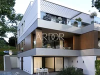 Presentamos un ático moderno situado en una calle tranquila sobre la playa de Lovran, con una vista panorámica sin obstáculos de la bahía de Kvarner.
