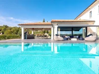 The interior is finished to a high standard: four spacious bedrooms with luxurious bathrooms, a modern kitchen equipped with Gaggenau appliances, an elegant living room with a fireplace, a dining room with designer chandeliers, a wellness area with a sauna, jacuzzi, and gym, as well as a heated infinity pool. This villa provides absolute comfort throughout the year. Enjoy the outdoor summer kitchen, lounge area with fireplace, and a private tennis court with ATP certification.